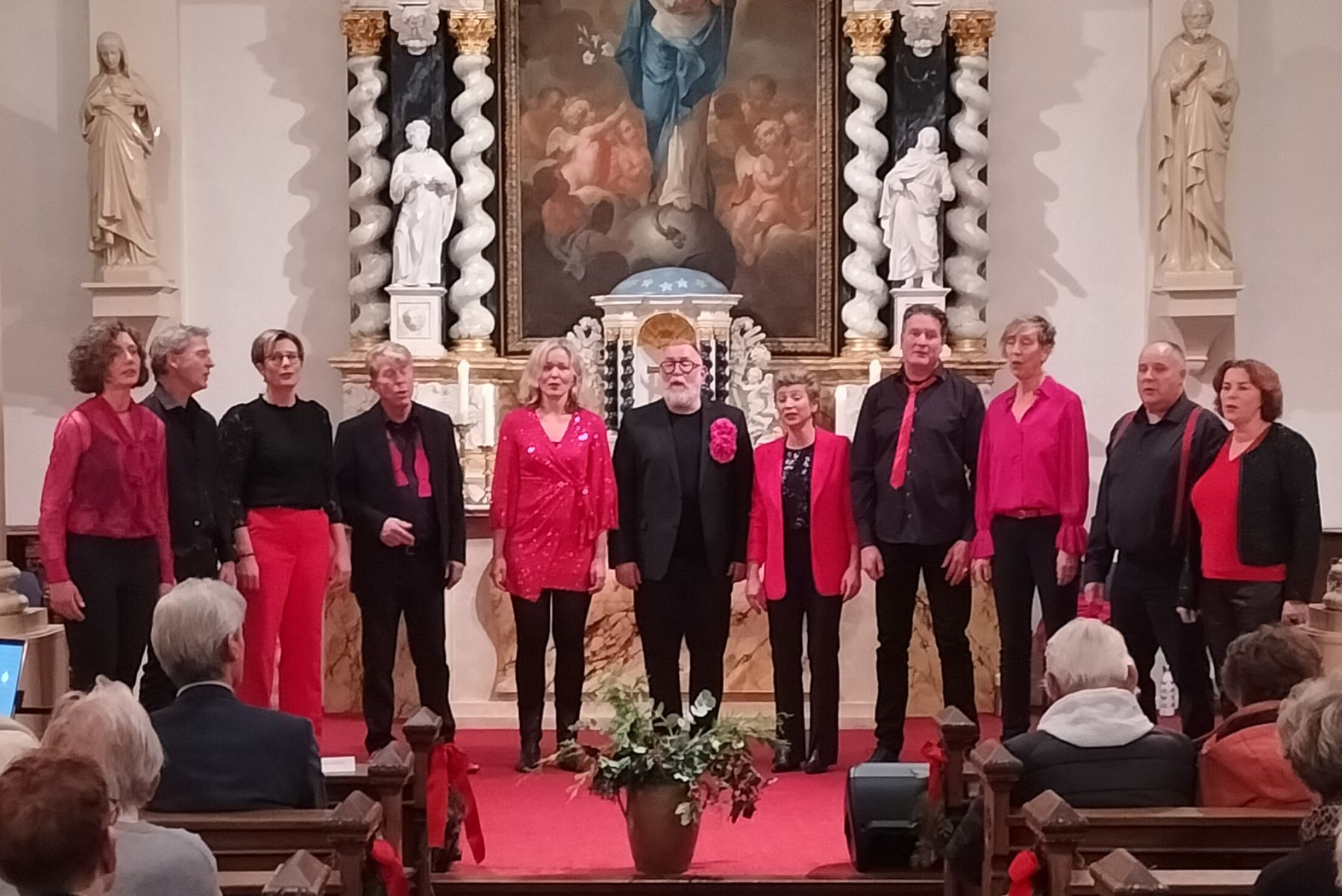 De zangformatie onder muzikale leiding van Tekke Withaar geeft een op kerst geïnspireerd optreden in de sfeervolle kerk van Bussloo
