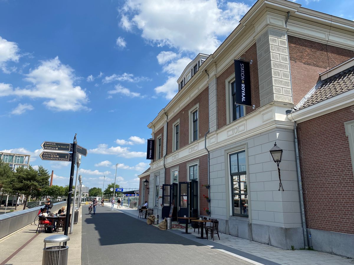 ☕ Op het stationsplein zelf vind je Station Royaal, een brasserie in het voormalige stationsgebouw. Hier geniet je van ontbijt, lunch of diner in een sfeervolle omgeving. Het terras biedt uitzicht op het stationsgebied, en binnen vind je rust en comfort om je dag voor te bereiden of juist af te sluiten.