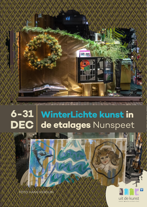 Ook dit jaar zie je in ‘Nunspeet kunstenaarsdorp’ bij een aantal winkeliers kunst in de etalage in de maand december!