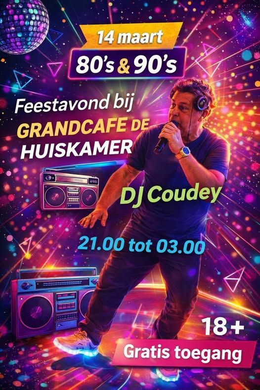 Grandcafé De Huiskamer organiseert een leuke 80’s en 90’s feestavond. De avond is voor iedereen die van deze muziek houdt. De deuren gaan open om 21:00 uur. Het feest duurt tot 03:00 uur.