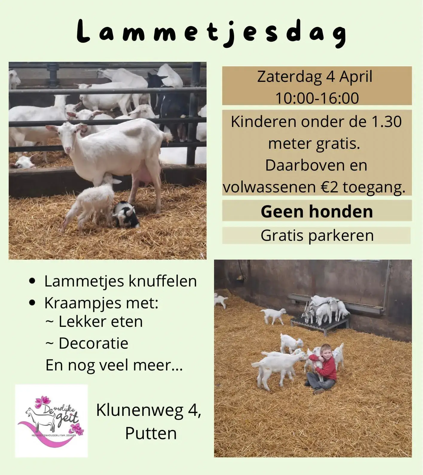 Beleef de lente op de boerderij tijdens Lammetjesdag bij Landwinkel ‘de Vrolijke Geit’. Geniet van honderden lammetjes, leuke kraampjes met eten en decoratie.