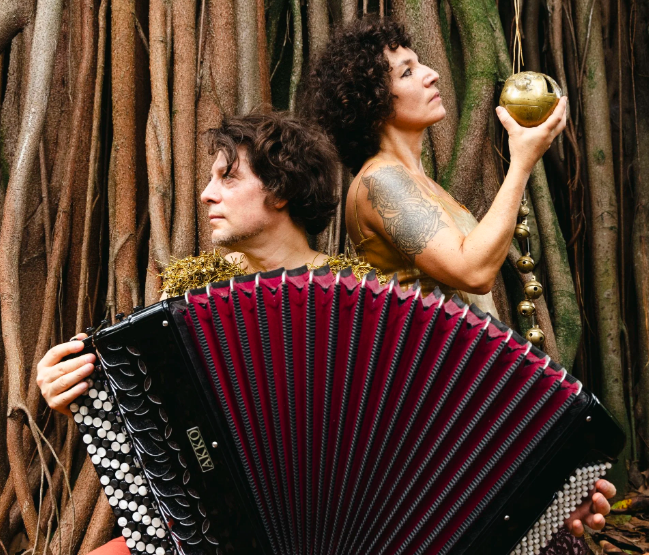 Samen nodigen Olegs Bayan (Russische knoppenaccordeon) en Simones Percuteria (drums & percussie) de luisteraar uit in een poëtische wereld van klanken, zang en gesproken tekst. De composities van het duo zijn een kleurrijke mix gebaseerd op Braziliaanse ritmes en Oost-Europese melodieën met een vleugje Balkanritmes, wat leidt tot een nieuwe manier van musiceren.
