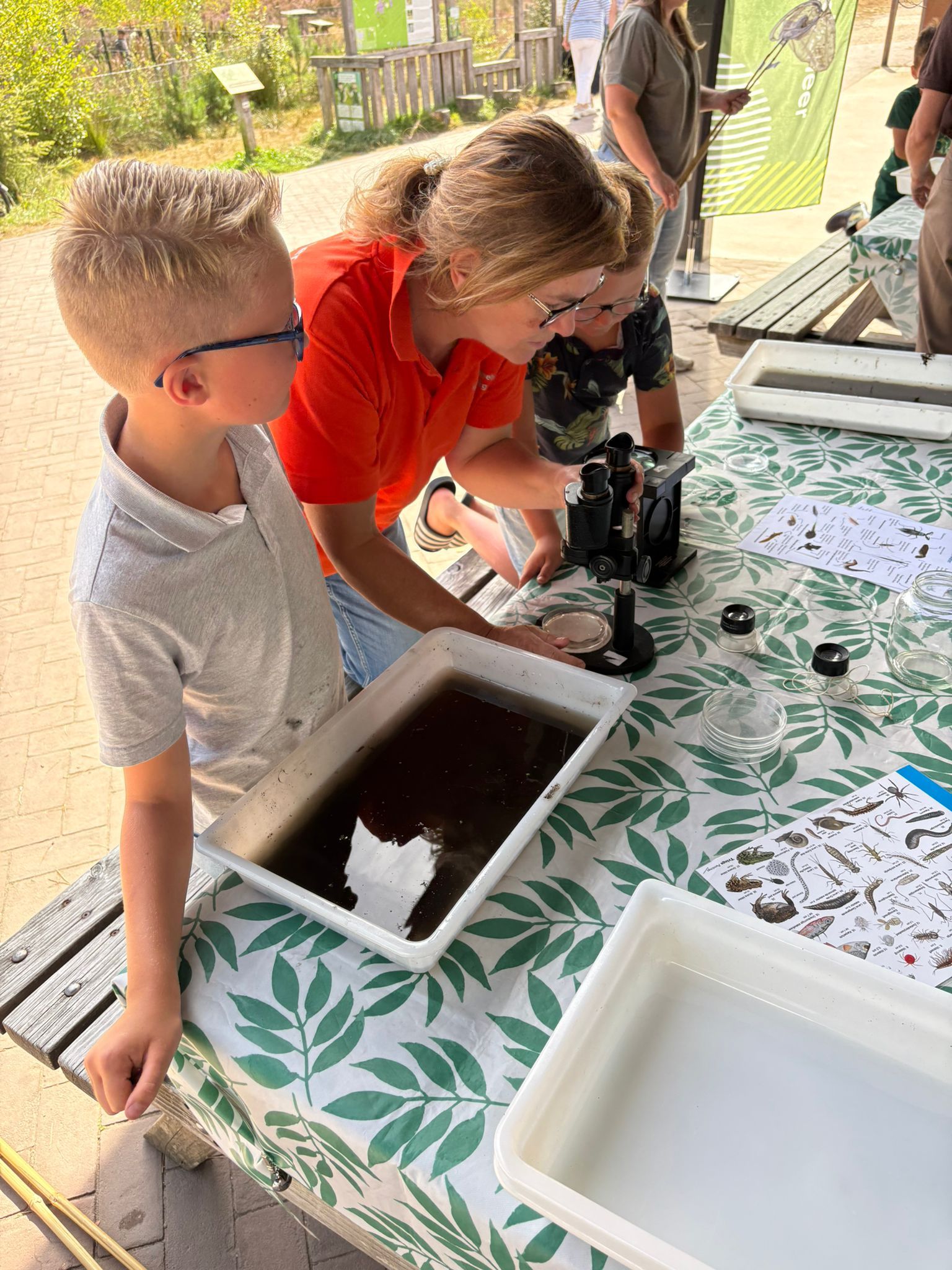Vrijwilligers staan klaar om je te helpen. Ze leggen uit hoe de beestjes heten. Ook vertellen ze wat de diertjes doen in de natuur. Zo leer je alles over de onderwaterwereld. Je ontdekt de geheimen van de bospoel.